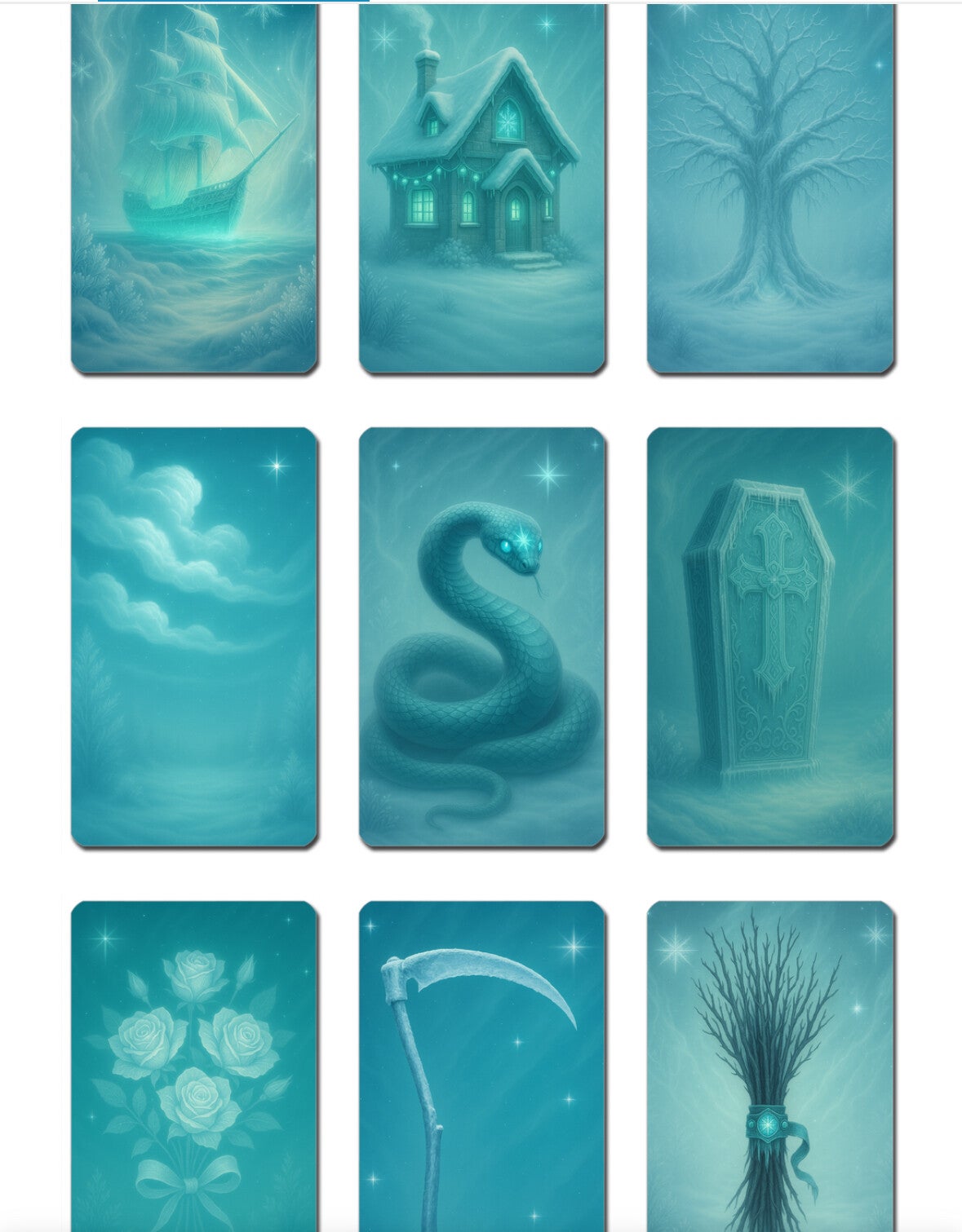 – 36 klassische Lenormandkarten in Eislicht Design