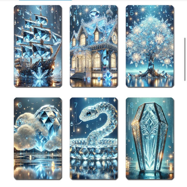 – 36 klassische Lenormandkarten in einem Schneebedeckten Design