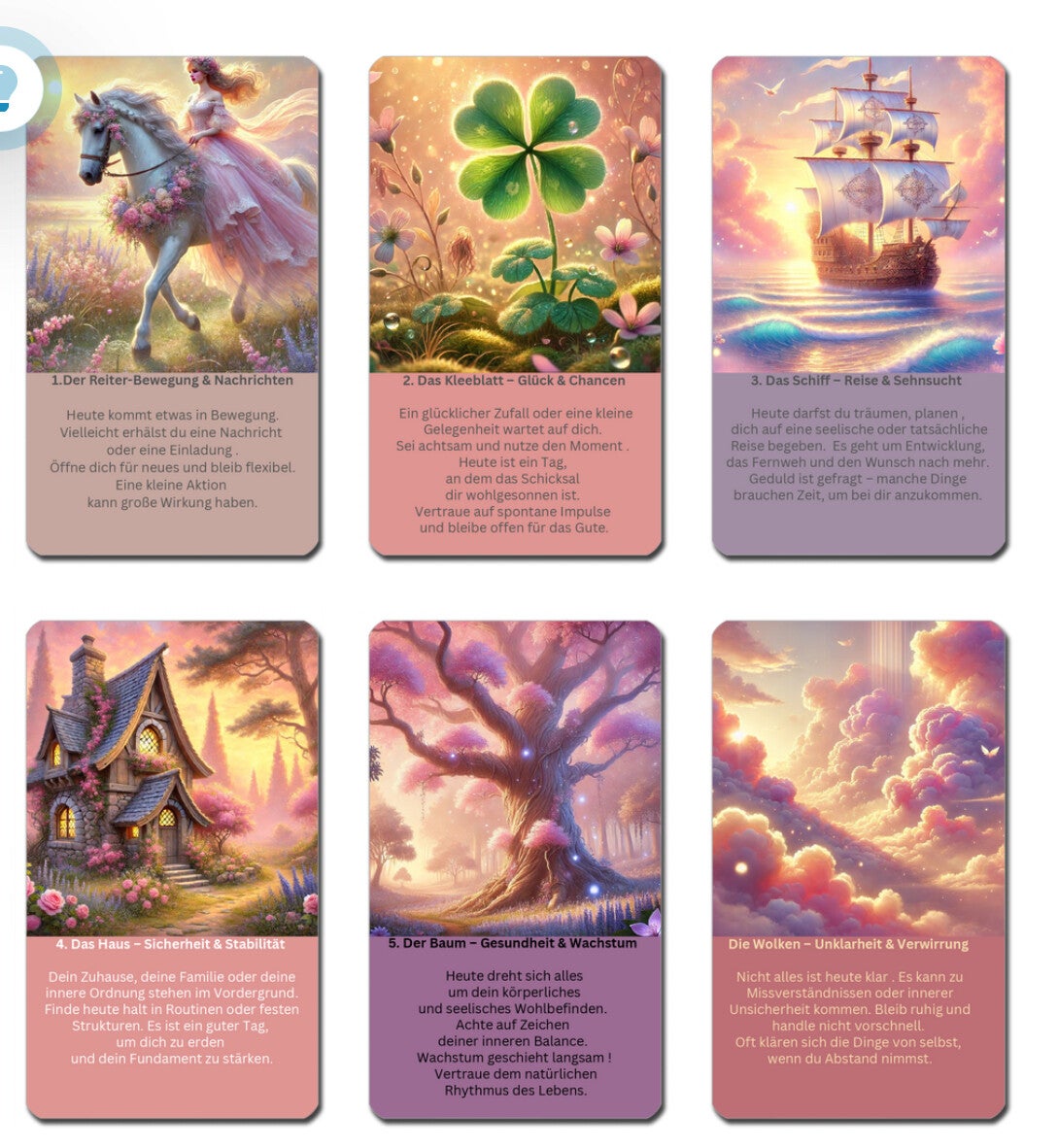 – 36 Tagesbotschaften aus dem klassische Lenormandkarten plus- 4 Zusatzkarten